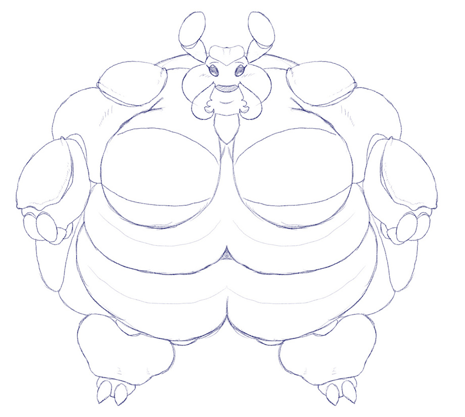 had the idea for a very lorge beetle woman with a thick russian accent,was hanging out in a thread about fat bugs n such so i figured id give her a try,its my first time trying to incorparate mindibles into an insectoid characters face,im not sure ive succeeded,i feel i need to do alot of rework to the head and face the most if i move forward with this design,the rest generally is how i envisioned in that shes got large tough plates on some parts of her body but theres still plenty of bulky softness between them,mostly inspired by a lorge beetle woman drawn by https://x.com/mixedmell on twitter