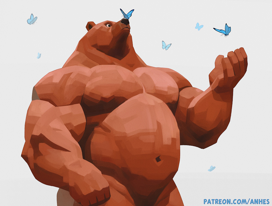 Another practice and more bears =P This time the bear leaves the leather outfit and go play with butterflies ;-) As you may guess I intentionally give a "square" look to the brushes to step out at least once from soft shaded image. I think it looks good for artistic concepts. I also play with complementary colors here, and the bears are cute -w-