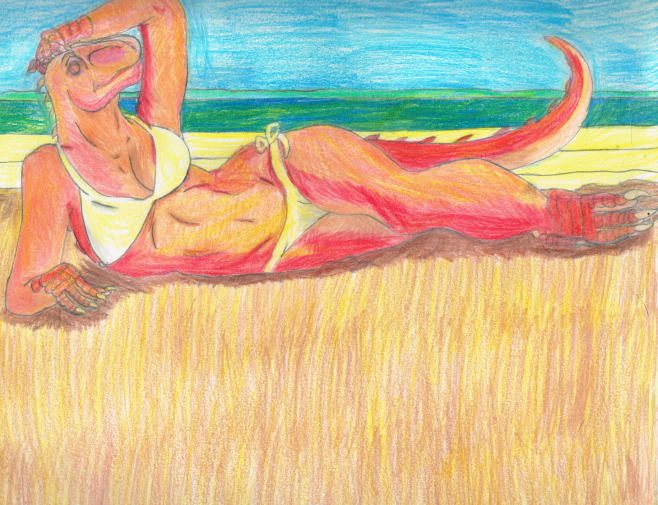 Something I finally finished after a almost a week of putting it off, it's Jacqueline lying on the beach somewhere in the upper Puget Sound, near Deception Pass or Fort Worden Park. She's back to the colors I originally gave her 7-8 years ago since they're a lot easier to brighten and darken than the colors I had been giving her in the more recent drawings. I was wanting to depict her with a hat and sunglasses and I thought I had the perfect reference photo but lost it when I closed browser windows.
