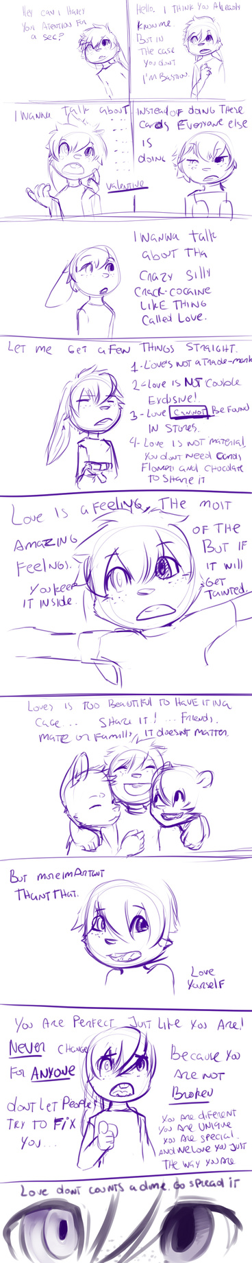 if you ask me... valentine is just a day.... we don't celebrate the miracle of love one day... we celebrate it every day, cause every single moment 7,003,019,800 of persons, 7,003,019,800 of mothers fathers daughters sons uncles pets masters mates bedfellows strangers neighbors and "that boy i met once"s are being loved.... that for... love my friends... love is not a day in a pretty calendar, love is not a number in one paper, love are not chocolates, love is not flowers. love is inside every single one of us, screaming clawing fighting and struggling to get out.
