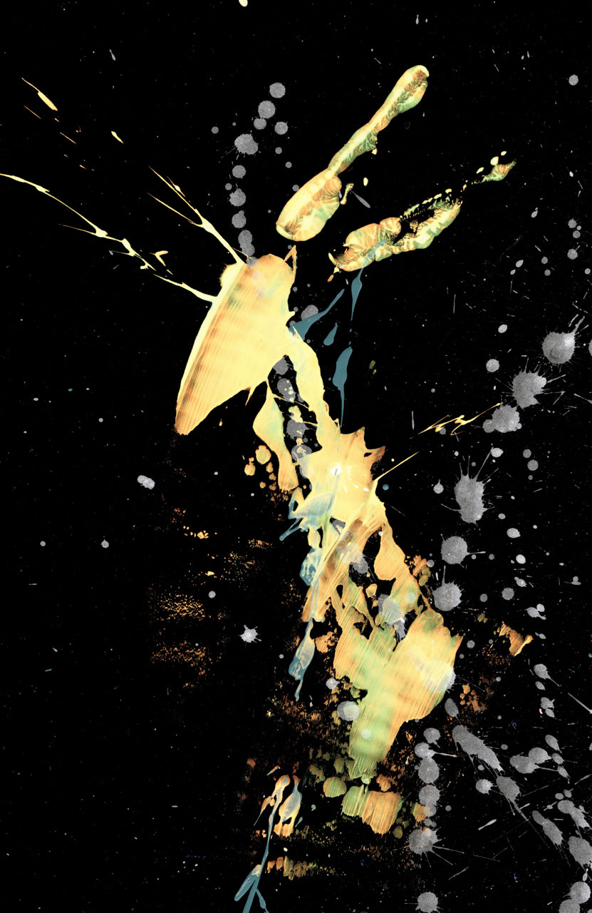 Scheduler can't alt-text some sites, so alt: Abstract mixed media inversion figure/face studies, often non-human. Golds and blues on black, mostly.