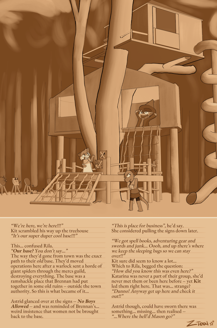 “We’re here, we’re here!!!” Kit scrambled his way up the treehouse “It’s our super duper cool base!!!”