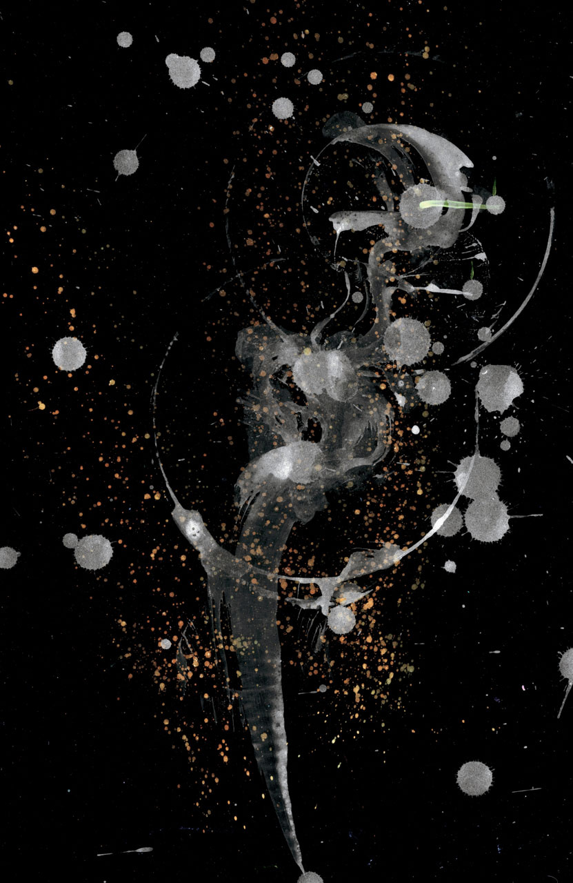Scheduler can't alt-text some sites, so alt: Abstract mixed media inversion figure/face studies, often non-human. Golds and blues on black, mostly.