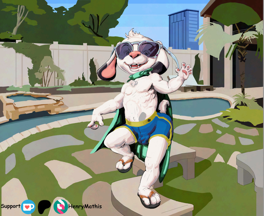 My OC Daemien introducing himself to the new folks around his local pool club.