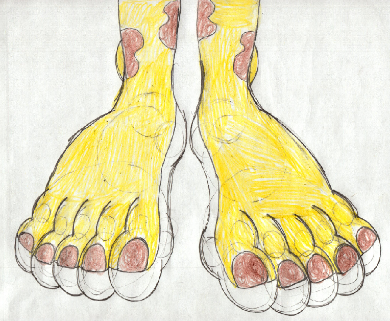 Decided to whip up a ref sheet for Jessica the Ocelot. I also included an example of what her feet look like.