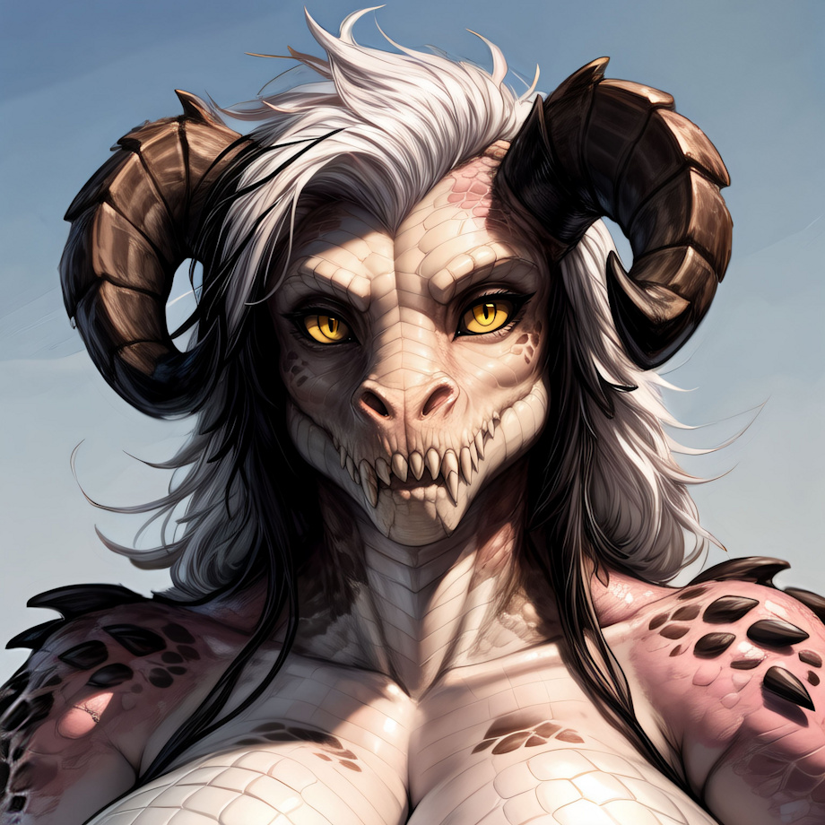 masterpiece, best quality <lora:(1) Furtastic Detailer:1> (solo:1.3) (closeup:1.3), BREAK A (female:1) (deathclaw:1.4) with a (milf body:1.3) and (large breasts, erect nipples:1) (pink nipples:1) (wild white hair, black highlights:1.4) and (yellow eyes with black pupils:1.4) (black sclera:1.3), (curved horns:1.2) (digitigrade:1) legs. (white and pink scales:1.3) (albino:1.3) albino_style Negative prompt: bloodshot eyes, arms behind back, hands behind back, blurry, blurry background, bad anatomy, bad hands, three hands, three legs, bad arms, missing legs, missing arms, poorly drawn face, bad face, fused face, cloned face, worst face, three crus, extra crus, fused crus, worst feet, three feet, fused feet, fused thigh, three thigh, fused thigh, extra thigh, worst thigh, missing fingers, extra fingers, ugly fingers, long fingers, horn, realistic photo, extra eyes, huge eyes, 2girl, amputation, disconnected limbs, worst quality, normal quality, low quality, low res, blurry, text, watermark, logo, banner, extra digits, cropped, jpeg artifacts, signature, username, error, sketch ,duplicate, ugly, monochrome, horror, geometry, mutation, disgusting, jpeg artifacts, bad quality, jpg artifacts,badhandv4, easynegative boring_e621_v4, bad quality, worst quality, bloodshot eyes, 2 tails, nipples Asian-Less2-Neg, black fur on forearms, black fur on legs, bell on ears,, bloodshot eyes, (nipples, nude, nudity:2) (erect nipples:2) (topless:2), black fur on forearms, black fur on legs, bell on ears,, (nipples, nude, nudity:2) (erect nipples:2) (topless:2), (nipples, nude, nudity:2) (erect nipples:2) (topless:2) Steps: 35, Sampler: Euler a, CFG scale: 7, Seed: 2154791762, Size: 768x768, Model hash: 8e2f4f1346, Model: yiffymix_v44, VAE hash: 24e650297c, VAE: furception_vae_1-0.safetensors, Denoising strength: 0.53, Mask blur: 13, CFG Rescale: 0.7, Lora hashes: "(1) Furtastic Detailer: 2e94914f676c", TI hashes: "albino_style: 899d6b928bb7, badhandv4: 5e40d722fc3d, easynegative: c74b4e810b03, boring_e621_v4: f9b806505bc2, Asian-Less2-Neg: 6584e401aa59", Version: v1.6.0 |