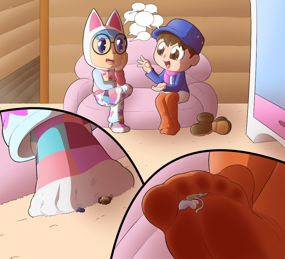 commission for Lithum and Jolla, with their AC villager selves having a bit of foot fun with each other's fursona :3