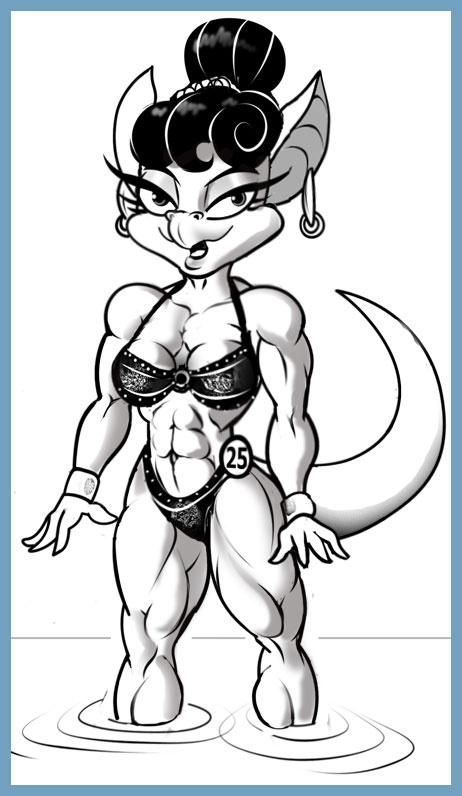 Clearly? Mona has adopted a "When in Rome" attitude on the matter. If you're gonna spend the rest of the day looking like a bodybuilding competitor? Go all the way.... posing bikini and all.