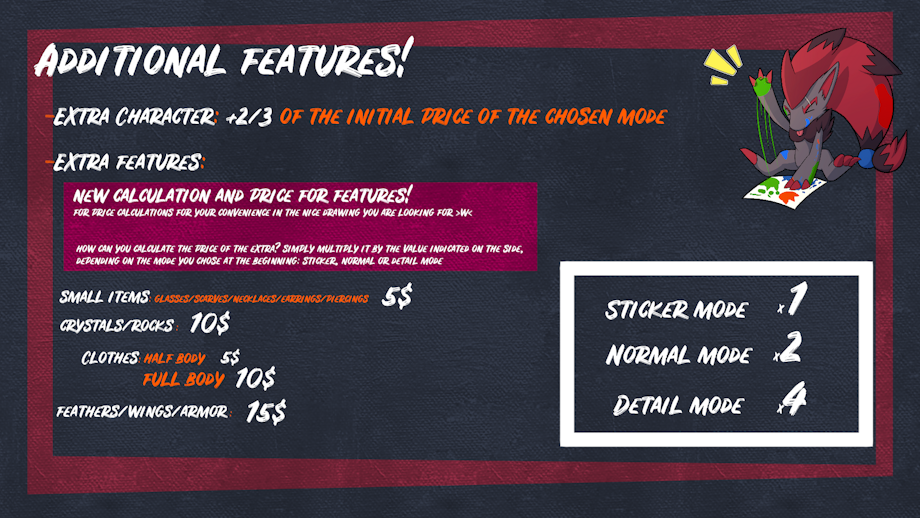 Hi, everyone! I must announce that the slots for commissions are full, so I will not be accepting any more orders for now. Thank you very much for your support! 🫂