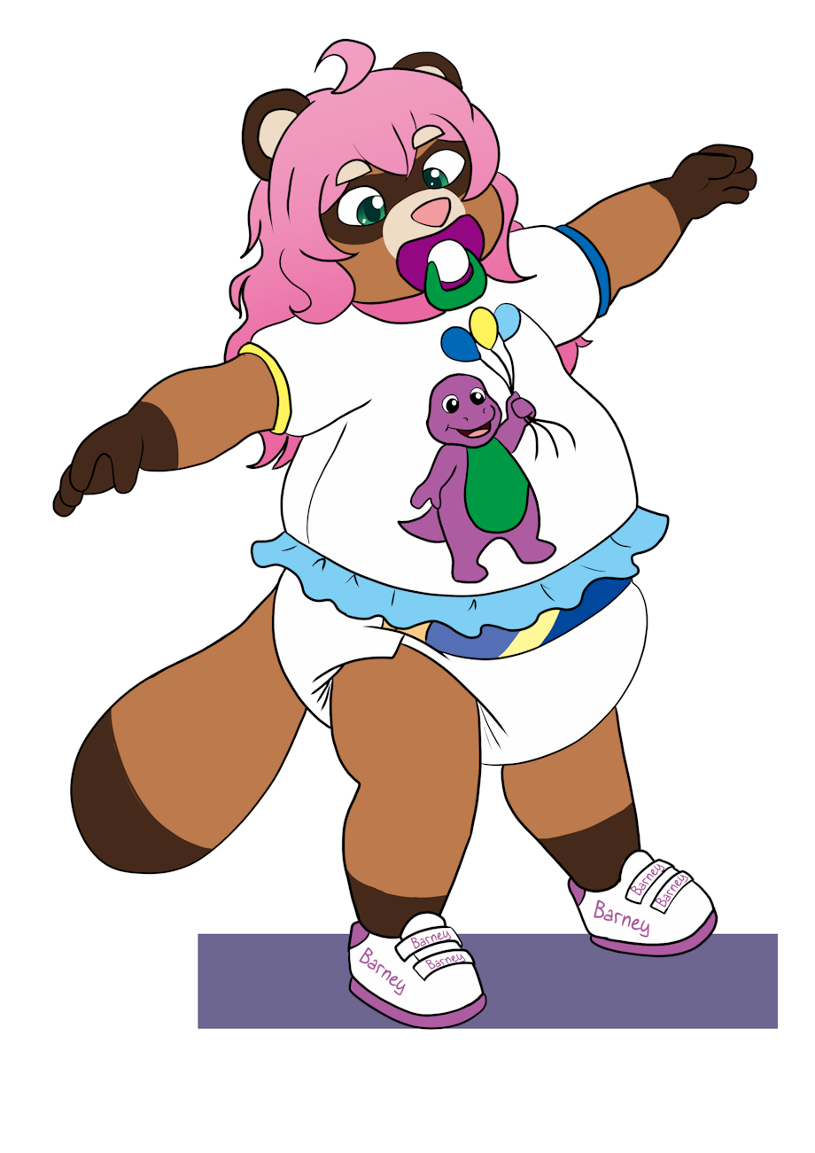 I might have a thing for Barney in baby mode. So here I am in the best outfit ever. Who needs pants?