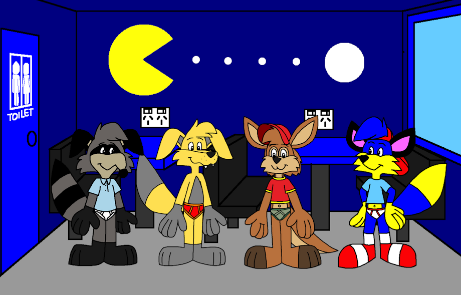 Shifty, Bentley, Brucie, and Alex are All Wearing Briefs Together at the Cafe Arcade.