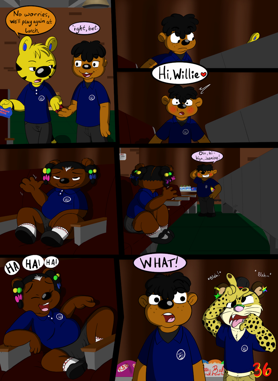 Willie and Taco dap each other, then Taco walks to his seat, wagging his tail and playfully gripping his butt cheek, causing Willie to feel aroused. Mike, in anger, places his hand on Willie's shoulder, staring at Taco.