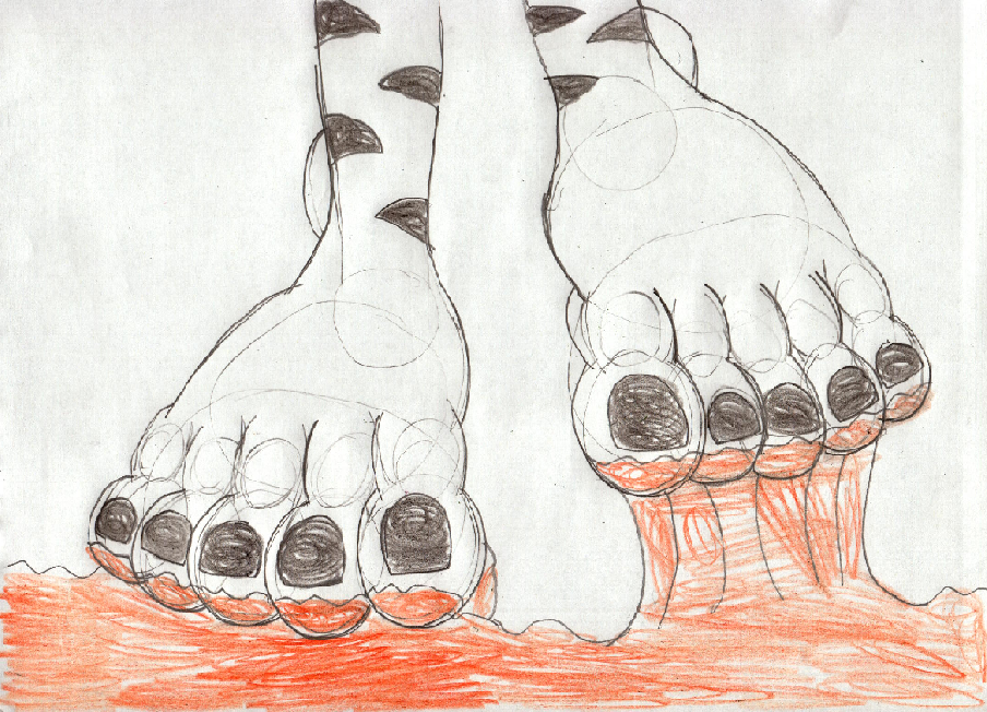 Decided to draw a pic of my Mobian OC gal Kyrie the White Tigress' feet in sticky orange goop.