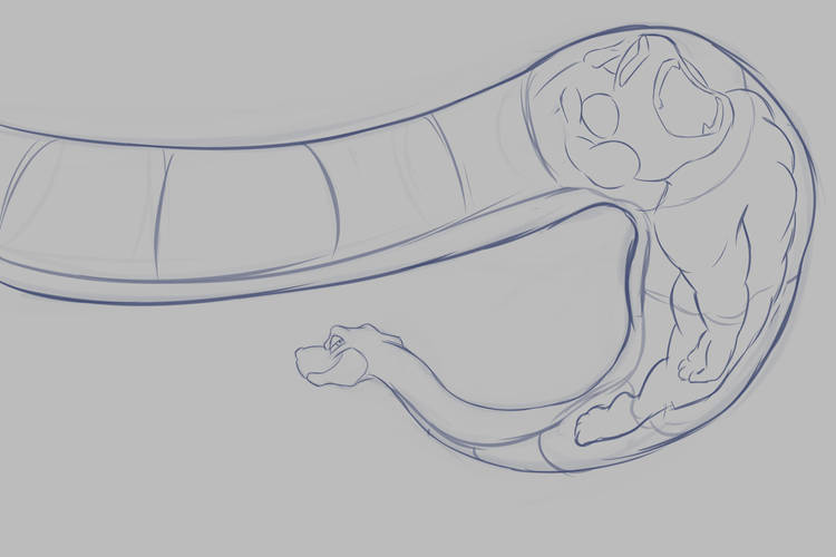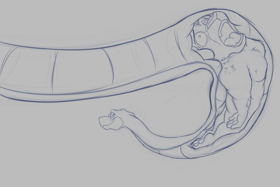 Joka's gut muffled Simba's looping sobs but it was borderline muted by the water. However, the purple python felt the lion boy's tightly packed into his stomach and how his prey's cries vibrated against his innards. Joka smirked back to delight in his dinner's despair, glad to have refined his constriction.