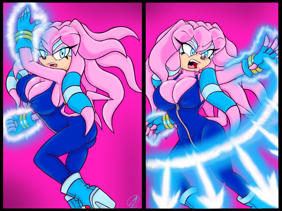 A pic of my Sonic OC Sky the Echidna using Chaos Swift (her own unique version of Shadow the Hedgehog's Chaos Spear attack).🩷🩵