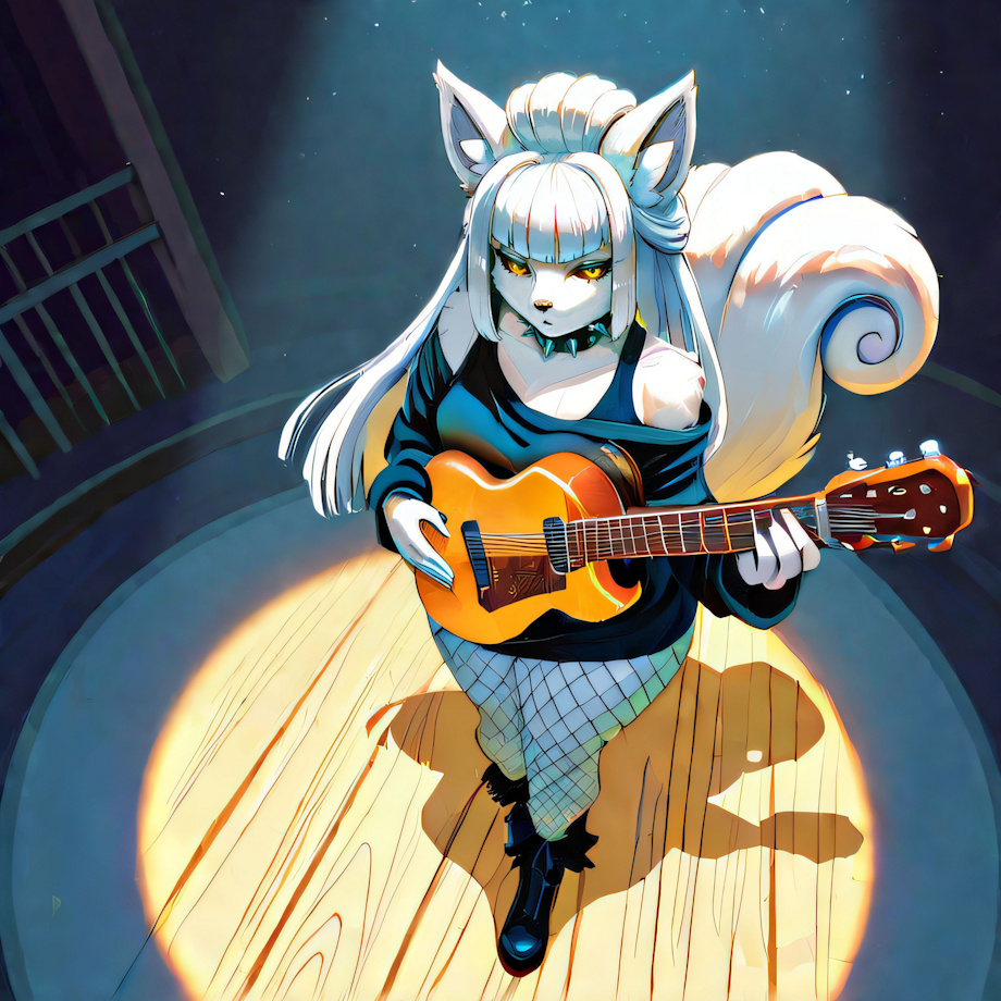 masterpiece, high quality, detailed fur, high detail, 4k, detailed background (1girl, solo:1.4) (from above, spotlight, playing guitar:1.4) (spiked collar, black boots, black shirt, fishnet leggings, black skirt:1.4) <lora:(1) FenrisXL Lighting:1> <lora:(1) Mjölnir (SDXL Lighting):1> <lora:photorealistic anthro 2:1> furry fface detailxl,, BREAK <st3rl1ng> A (female:1.2) (vulpix:1.4) (silver fur:1.4) (long hair:1.4) (hime cut:1.2) (silver hair:2) (white belly:1.4) (curvy:1.3) (medium breasts:1.3) (digitigrade:1.4) (yellow eyes with black pupils:1.3) (black sclera:1.3) (black collar:1.6) (shoulder tuft, ankle tuft:1.4) (white tails:2), (clothes:2) Negative prompt: bloodshot eyes, arms behind back, hands behind back, blurry, blurry background, bad anatomy, bad hands, three hands, three legs, bad arms, missing legs, missing arms, poorly drawn face, bad face, fused face, cloned face, worst face, three crus, extra crus, fused crus, worst feet, three feet, fused feet, fused thigh, three thigh, fused thigh, extra thigh, worst thigh, missing fingers, extra fingers, ugly fingers, long fingers, horn, realistic photo, extra eyes, huge eyes, 2girl, amputation, disconnected limbs, worst quality, normal quality, low quality, low res, blurry, text, watermark, logo, banner, extra digits, cropped, jpeg artifacts, signature, username, error, sketch ,duplicate, ugly, monochrome, horror, geometry, mutation, disgusting, jpeg artifacts, , NEGATIVE_HANDS ac_neg2 p0rnXL-neg DeepNegative_xl_v1 BeyondV3-neg, (nipples, nude, nudity:2) (erect nipples:2) (topless:2) Steps: 35, Sampler: DDIM, Schedule type: SGM Uniform, CFG scale: 3, Seed: 949060656, Size: 512x512, Model hash: 171e88f0da, Model: yiffymix_v62Noobxl, Denoising strength: 0.25, ADetailer model: person_yolov8s-seg.pt, ADetailer confidence: 0.3, ADetailer dilate erode: 4, ADetailer mask blur: 4, ADetailer denoising strength: 0.4, ADetailer inpaint only masked: True, ADetailer inpaint padding: 32, ADetailer model 2nd: face_yolov8s.pt, ADetailer confidence 2nd: 0.3, ADetailer dilate erode 2nd: 4, ADetailer mask blur 2nd: 4, ADetailer denoising strength 2nd: 0.4, ADetailer inpaint only masked 2nd: True, ADetailer inpaint padding 2nd: 32, ADetailer model 3rd: hand_yolov8n.pt, ADetailer confidence 3rd: 0.3, ADetailer dilate erode 3rd: 4, ADetailer mask blur 3rd: 4, ADetailer denoising strength 3rd: 0.3, ADetailer inpaint only masked 3rd: True, ADetailer inpaint padding 3rd: 32, ADetailer version: 25.3.0, Hires upscale: 1.5, Hires steps: 20, Hires upscaler: 4xUltrasharp_4xUltrasharpV10.pth, Lora hashes: "(1) FenrisXL Lighting: c49df8024095, (1) Mjölnir (SDXL Lighting): 368d428918ac, photorealistic anthro 2: bed53d4c8b68", TI: "detailxl, detailxl", Version: f2.0.1v1.10.1-previous-224-g90019688 |
