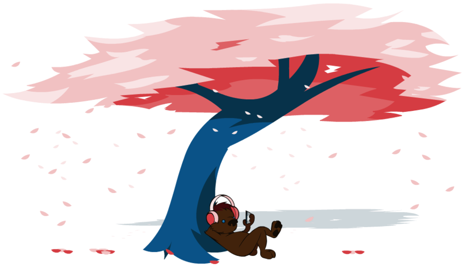 Bubba sitting under a cherry tree Listening to an IPOD with a set of Bluetooth headphones