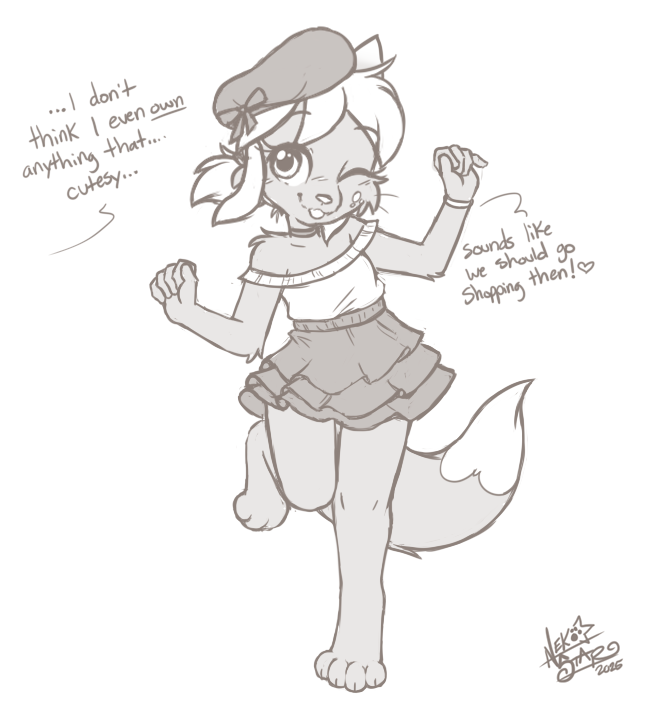 Your style has really come into it's own. I know I haven't been following you as long as others, but man ... this is just so cute and shows your flexibility in clothing and different poses, two things that can be an artist's worst foe.