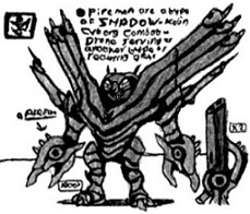 SHADOW-Insect Beast Chain 影昆虫獣チェーン is a centipede-like member of SHADOW's Inner-Circle, Lord-Destruction's personal minions and works with Kaizu on missions sometimes. He's normally calm, but he has a hunger for battle and is often first in a fight with his 14 venom-tipped, clawed legs and attacks with blinding speed like a living chainsaw, hence his name Chain.