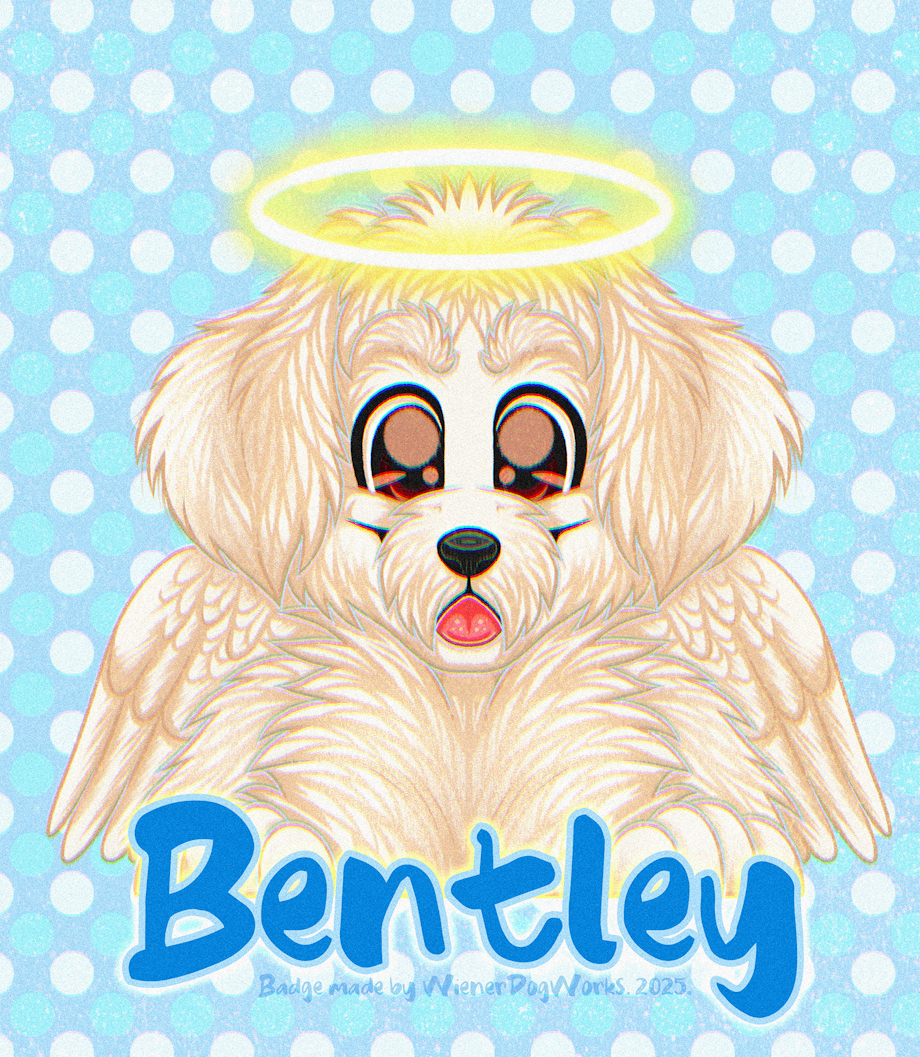 A shaded badge commission completed of a super fluffy adorable doggy!
