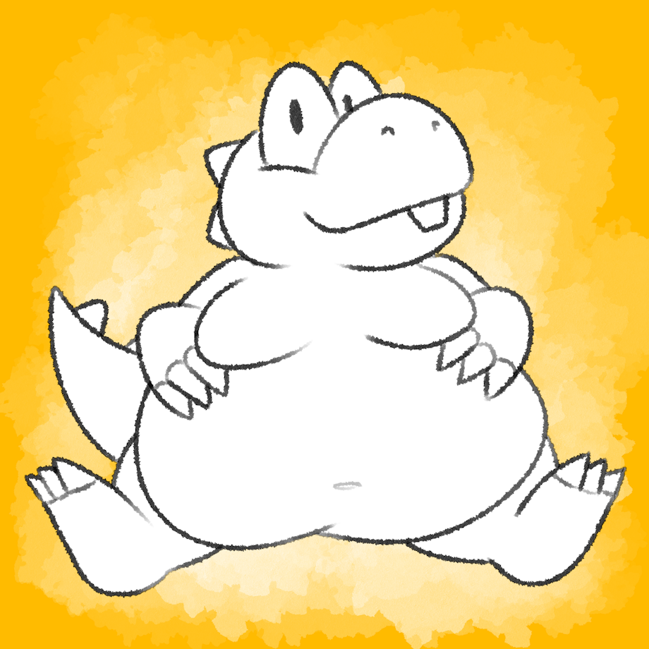 It's a Magon from Wario World, for Watto! He's always had it as his icon - they look kinda like an orange yoshi and a cheeseasaurus rex! He likes weight gain, so I fattened him up too! :3