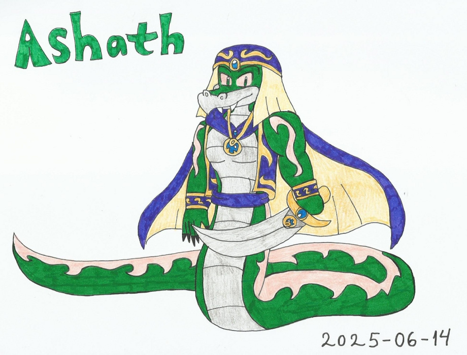 Ashath's design is based on my Sonic OC villain Khalid the Cobra and Lyric the Last Ancient from the Sonic Boom games. The Rise of Lyric and Shattered Crystal. Unlike Lyric, Ashath is more organic rather than being cyborganic. And Unlike Khalid, he is Burmese Python-like