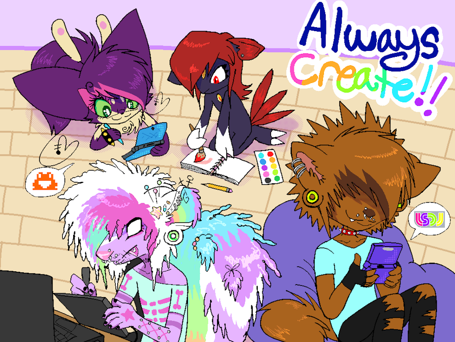 (bare with me as i try to form my thoughts and words the best way i can) but this piece is meant to embrace the creative aspect of things in our system ! :) like art and hobbies. i like that there is almost always smthing going on in terms of creative projects and self expression ! its rlly fascinating to me sometimes and i wanted to draw smthing for it.. um.. i used to be RLLY scared of this (and ngl, it can still scare me sometimes) but ive learned to just um. i guess be more okay with it since realistically there wasn't anything i could do ?? :p. but art is a good way to speak and express! whether that be a sewing project, animation, video editing, photography, drawing, journaling etc etc etc. we love to make things!!!