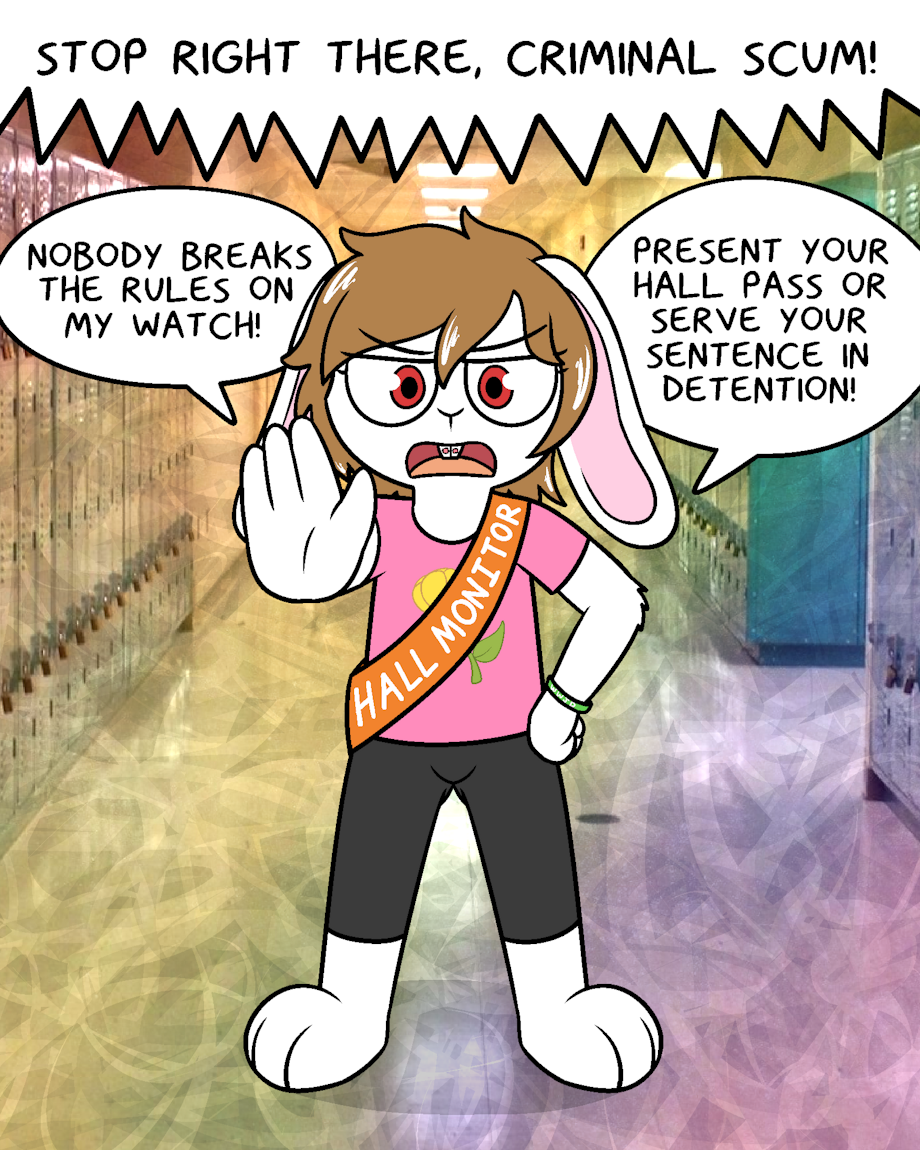 meet Alice, everyone at Da Silva Junior High's least favorite student! she's a real stickler to the school rules and has takes her role as hall monitor very seriously... too seriously. chill the hell out, brah.