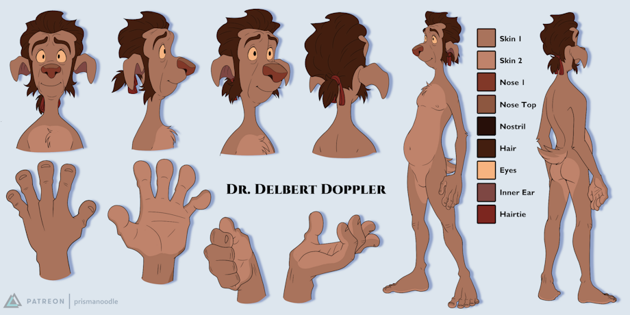 I couldn't find a model sheet for Dr. Doppler anywhere online, so I made my own. Enjoy the nerdy dog scientist from Treasure Planet.