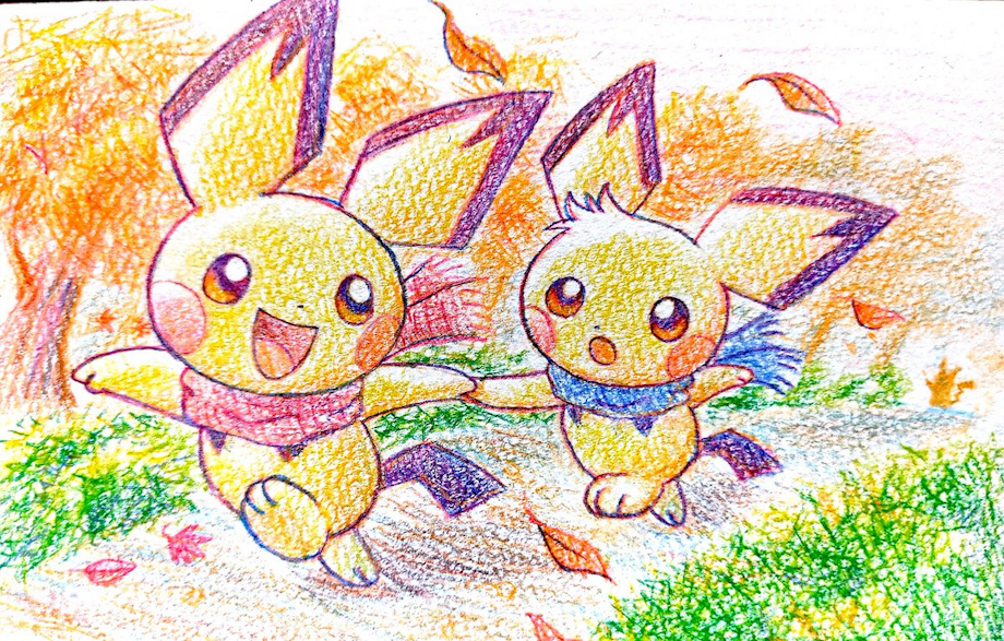 The Pichu brothers play with the fallen leaves.