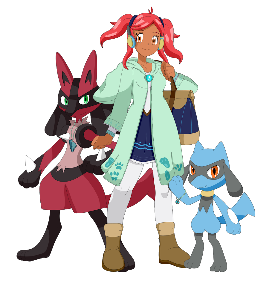 Even after evolving into a Lucario, Kaichi remains by her side, and continues to wear the sea glass pendant.