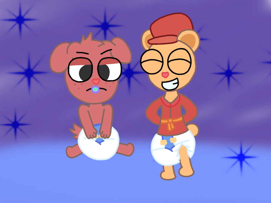 Art trade that I did with @J-HTF featuring his OC and Pop ^^