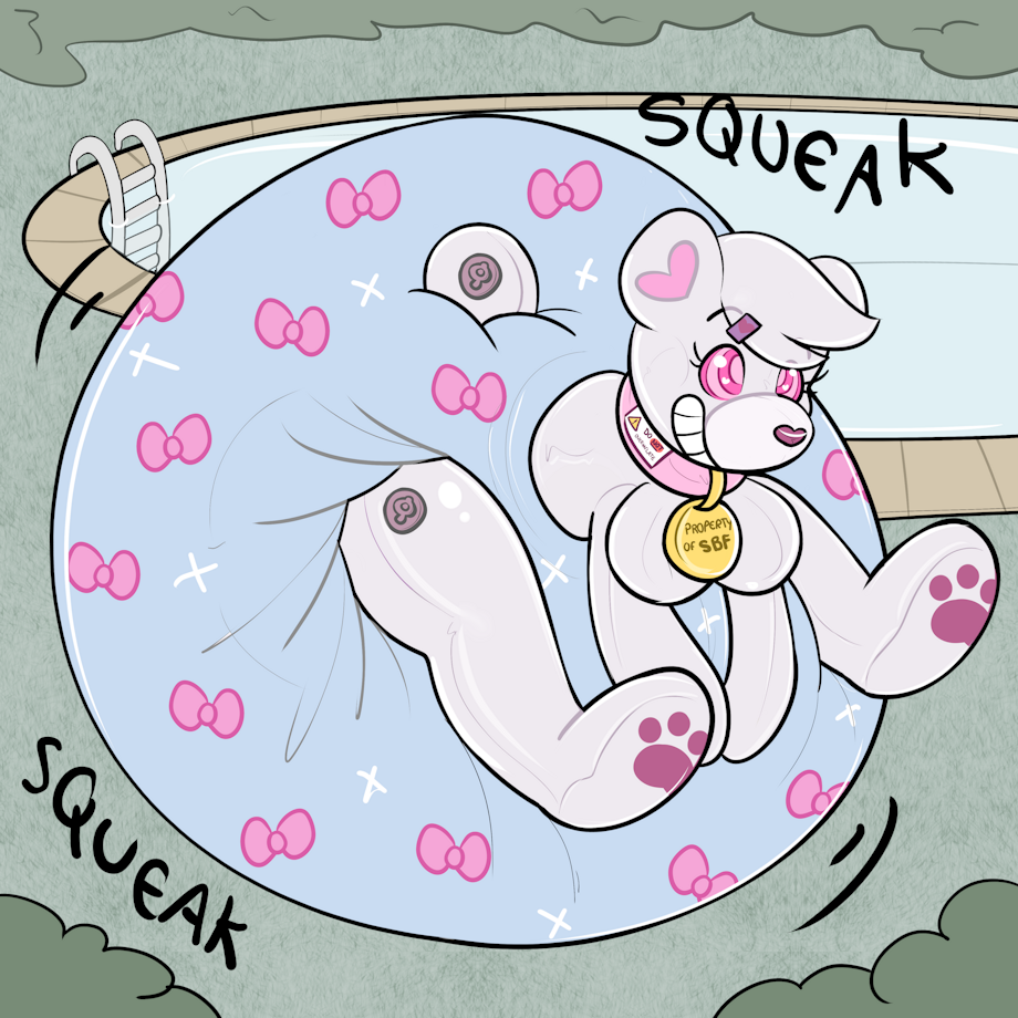 'Huh, weird how this floatie keeps trying to roll away. Must be defective or something' said another one, starting to poke you, making you squeak. 'He makes noises when you squeeze him; like some sort of built-in sound effect, so cool! Le'ts rent him for the whole day!!' The group agreed enthusiastically.