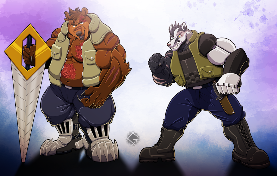 Two more novel characters, their sizes aren't TECHNICALLY that close, bear's pretty damn massive, picking up the folks he hugs fully off their feet, calling them cub, pup, kit, etc.