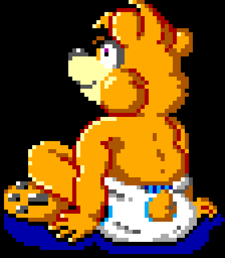 An image from the game Whack 'Em Smack 'Em Byrons: Remarked. I dare say that Byron's got the cutest diaper butt on the Master System and Game Gear. (Sorry, whatever you are from the Ottiphants.)