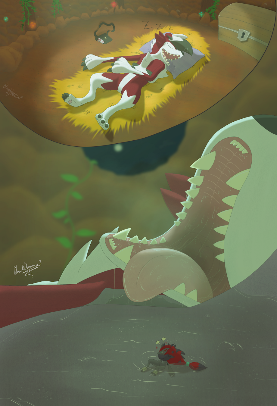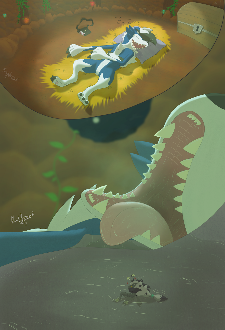 It wouldn't be until the night settled that Kerberos would see (and feel) the first cracks in the whole mixed-sized team idea. There he laid, in the middle of the night, awoken by deafening snores and partially submerged in the drool of his slumbering friend. From his point of view in the pillow, the lycanroc's maw looked like a neverending abyss, a grim reminder of how hard it might be to achieve full co-existance between norms and nanos. At least Marcus was having a pleasant night dreaming about future adventures with his zoroark pal...