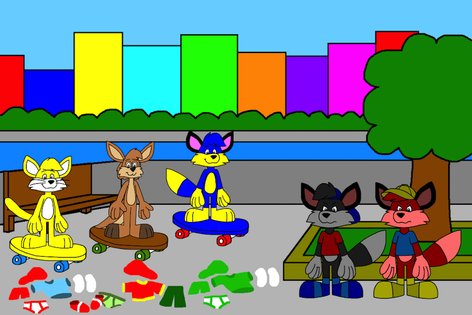 Dexter and Rudi Taking a Clothes Off and Ride on the Skateboards Around the Park