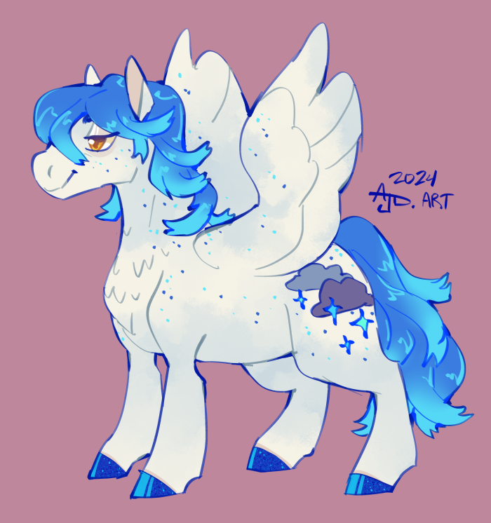 Disco Rain is a pretty new pegasus to my herd, I haven't found his place just yet but I do love the cutie mark I gave him. Those blue freckles are so gorgeous!