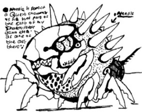 Needle was an experimental living-weapon that was in development before the "Bio-Gene X" event. Unlike the Hand & the TK-666.02 (that are machines), Needle is a experiment in organic genetic engineering (combining many life-forms, including a spider, a venus fly-trap, a piranha and a crocodile, among others), he also has iron-spikes on it's back. It's reasons for being in the tournament are as yet unknown.