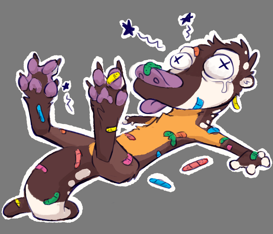 Poor Coonix was having tummy troubles so I drew him hurt! Send him some love, although I think he's feeling better now.