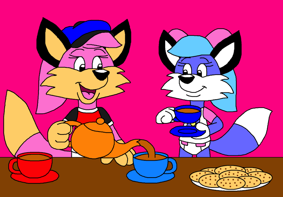Becky the Fox Having a Tea Party with Bluebell the Fox