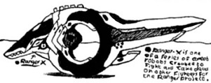 Ranger-X: One of a series of advanced combat-robots to gather data for the Omni-Group Tech group, a blue Velociraptor/wheel/sword-based mechanoid.