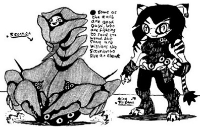 Scorpion: a giant mutated scorpion-like creature that controls other giant bugs & insects during battle. He wants to replace all humans with bugs, with him as king.