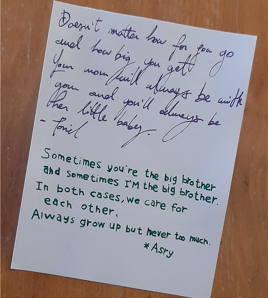 Born as a standalone pic, and then decided to make it a fake real life polaroid, managed to get a friend to write Toriel's text (my cursive handwriting sucks A§), while Asriel's is actually my own writing.