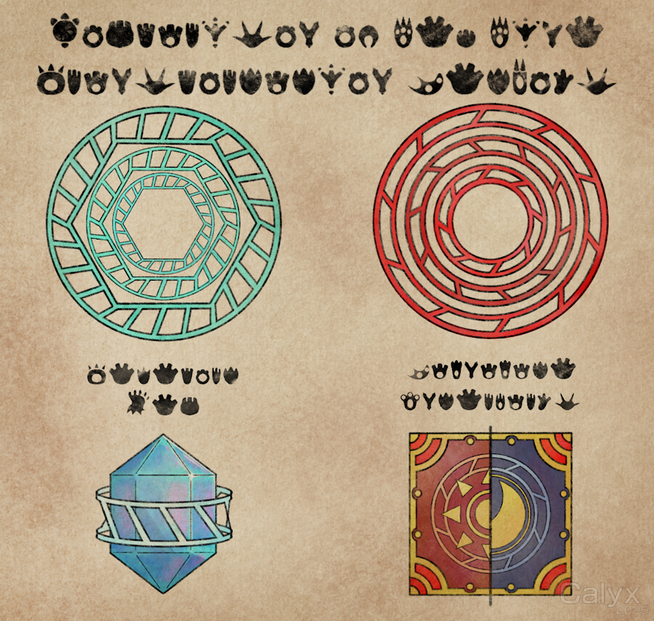 ”The Entercards had to be set in a specially made flat deck to keep them stable in one place without inducing physical strain on the cards themselves, and had to be put in a square of four in order to allow for the possibility of different combinations and redundancy. They’re more durable than a Teleport Gem, but should any one be damaged for any reason, it can be replaced while keeping the other ones intact. Thanks to some additional observations of Solrock and Lunatone, the runes and engravings resemble the sun and moon. Due to the nature of ley lines being cosmically tied to the planet, mimicking the celestial bodies and other astral phenomena using these symbols make it easier to manipulate them. Note the red color too, as that’s what the ley lines appear to be in a pure state, unaffected by Psychic energy.