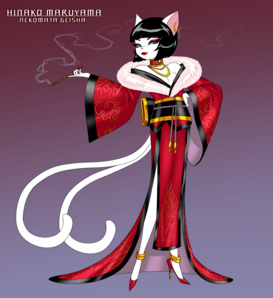Keiko's young apprentice and friend, a nekomata yokai reborn from a spirit of a geisha who was murdered by her jealous, possessive and unstable customer many years ago. Thanks to this trauma, it took her awhile to warm up to spending time in company of men again, something Keiko helped her with. She utilizes her charms and petite, fragile looks to lure in rapists and criminals while using her claws, magic and enchanted tanto knife to dispose of them. Close, intimate friends with Adrian and treats his son William like a little brother.