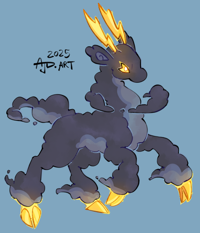 Such a wonderful and cool idea to make a storm elemental cervine! I ran away with the idea to make it a little more antelope shape and I freaking love it!! Maybe a fun beast for my pony ocs to deal with. >:3