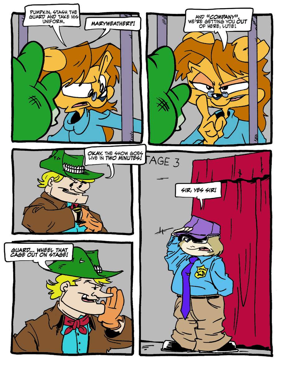 Both Marywheather & Pumpkin are trying to keep one step ahead of a TV hunter who's after their friend Lutie.