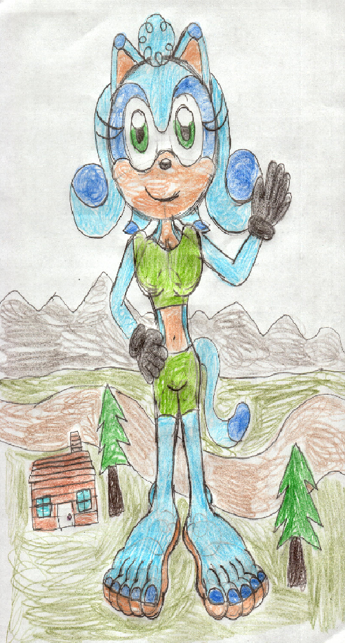 Decided to draw my Mobian OC gal Pamela the Badger as a giantess barefoot in a rural mountain setting akin to Wisconsin. I also gave her blue toenails.