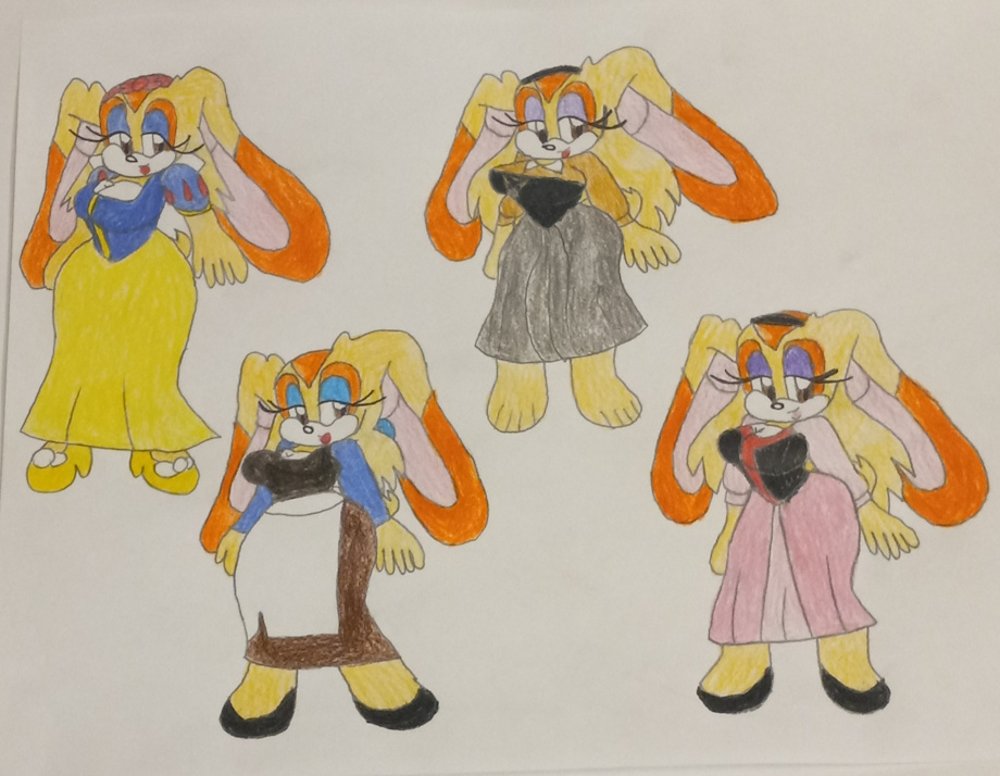Just doodles of older Cream cosplaying as Snow White, Cinderella, Aurora or Briar Rose and Princess Eilonwy.
